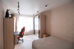 Квартира расположена на 17 этаже 18-этажного дома, окна выходят на улицу и во двор.
